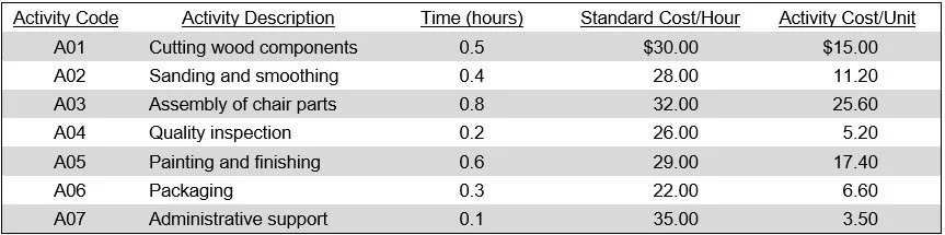 A bill of activities is a listing of those actions required to complete a product or provide a service. The standard costs of these activities are also listed, so that you can compile the aggregate cost of the activities on a per-unit basis. Activities are usually listed in the sequence in which they are employed. A sample bill of activities appears in the following exhibit.