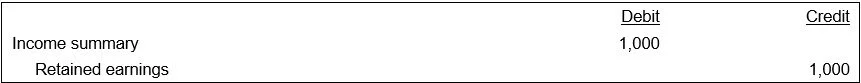 3. Shift the $1,000 net profit balance in the income summary account to the retained earnings account: