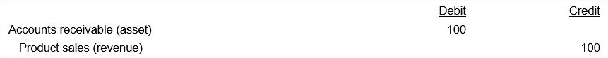 In essence, the debit increases one of the asset accounts, while the credit increases shareholders’ equity. These offsetting entries are explained by the accounting equation, where assets must equal liabilities plus equity. A sample journal entry that shows the credit entry for a $100 sale for which an invoice was issued appears in the following exhibit.